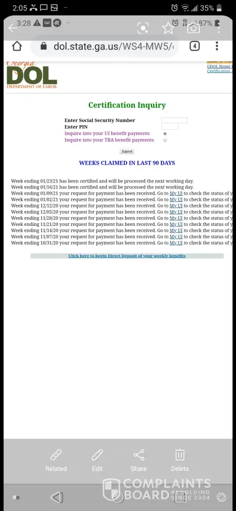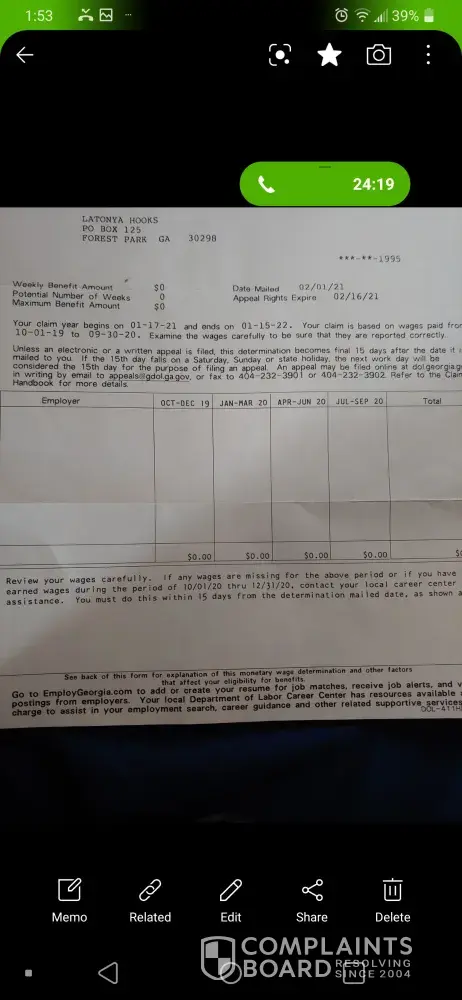 Desired outcome: Just to get a response back from the Columbus Georgia Department of Labor.