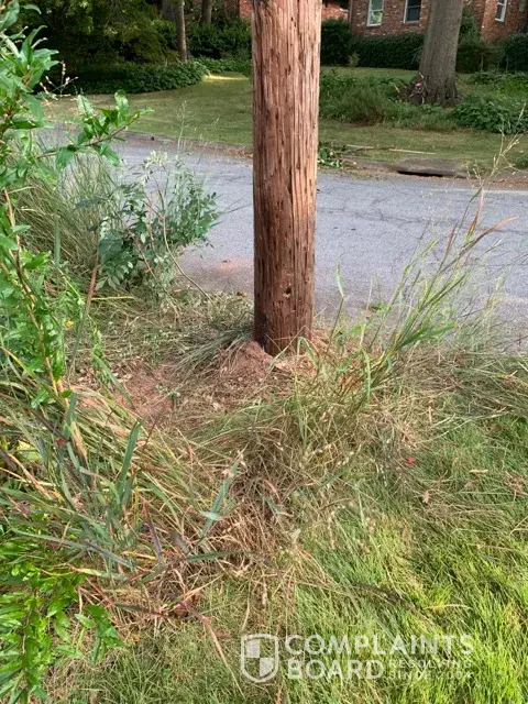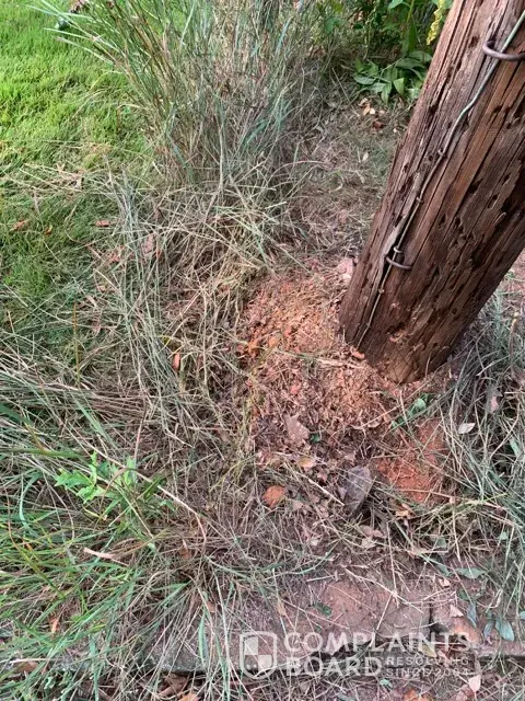 Landscape damage at utility pole