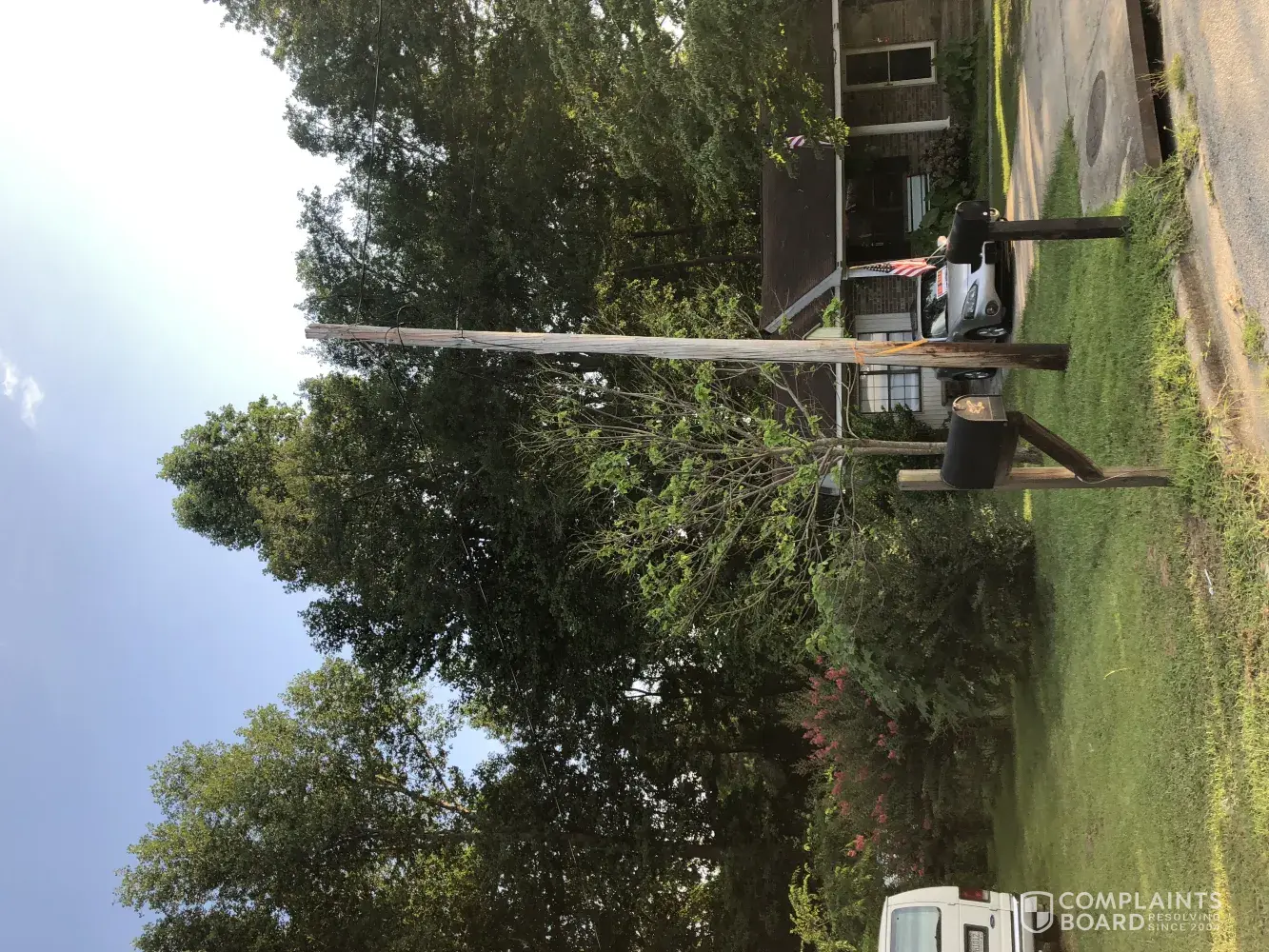 10-1-2018 My wife returned home (3164 Habersham Rd) to find several Quanta Services trucks and workman replacing a pole located in a strip of land that I believe belongs to my neighbor. Pole described as "rotten" and service performed by a subcontractor. Used my driveway and front yard to access the pole. My yard was seeded 7 days previously and has been watered x 2 daily. The need to replace the pole had to be known to GP weeks ago and I would have postponed the expensive seeding to allow the work to be accomplished but I received no such notification.