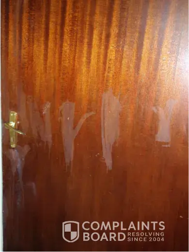My house was fully renovated before you moved in. The mark on the door was quite obviously left there by your kids throwing some drinks on the door. The carpet was only one year old and steam cleaned before you moved in. It was left filthy and stinky after your 3 kids, cat and a numerous family going through it. Ray White's report reflected my version of my house. I also have photos of what the property looked liked before and after you moved in and out. If it was old and stinky, why did you move in and refused to move out while not paying me rent for 2 months? You knew the house was for sale and access was required for prospective buyers so what's your problem?