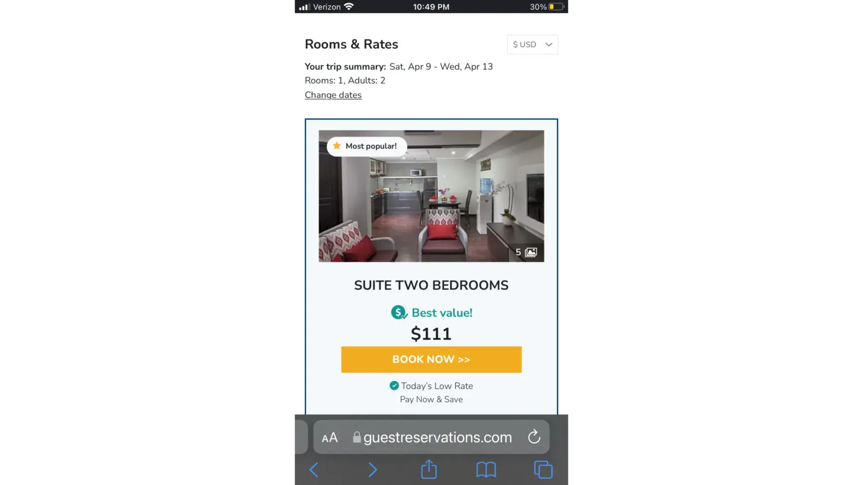 On March 20th 2022 I reserved a room in Bali for four nights for $111.