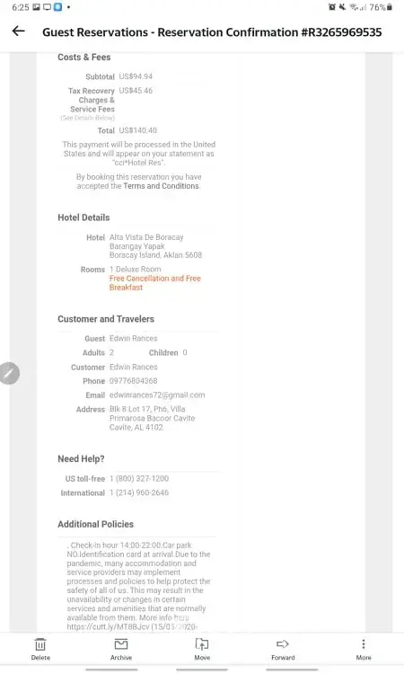 Booking reference #R3265969535 Alta Vista Hotel Boracay Phlippines