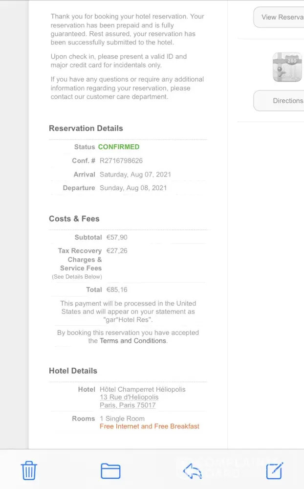 It is only when you give them your credit card number and complete the reservation that they reveal an extraordinary fee ( for instance €27, 56 for a hotel room that was €57) and claim that they have the best price guarantee since breakfast and taxes are included.