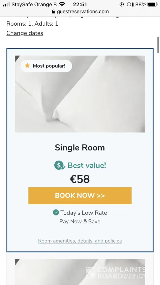 Hotel reservation / misrepresentation, fraud, misleading, impersonating the hotel