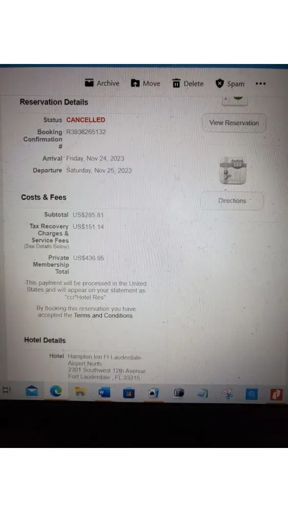Desired outcome: Refund of fees related to booking my hotel room or cancellation WITH refund