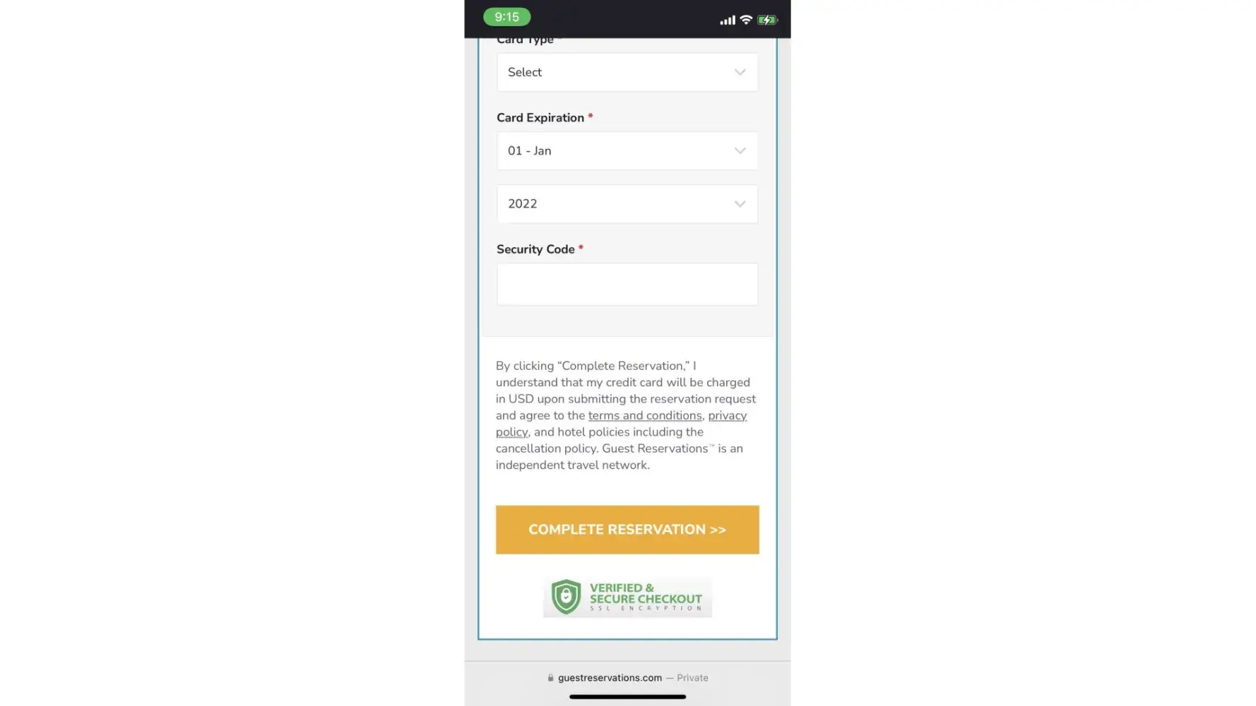 This payment will be processed in the United States and will appear on your statement as "gar*Hotel Res".