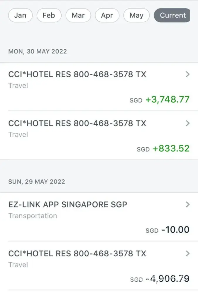 I was charged SGD 4906.79. But I was refunded SGD 3748.77 + SGD 833.52 = SGD 4582.29