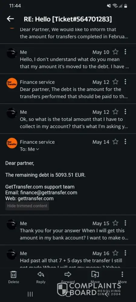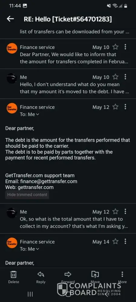 The issue that I have experienced was: I registered with Get Transfer as a driver. The reporting period is 3 months. At the end of 3 months, I should receive compensation for my expenses and income from transporting passengers. The reporting period has ended, but I did not receive payments from Get Transfer. I only received letters from the Get Transfer company stating that they recognize the debt, but the terms of payment are unknown.