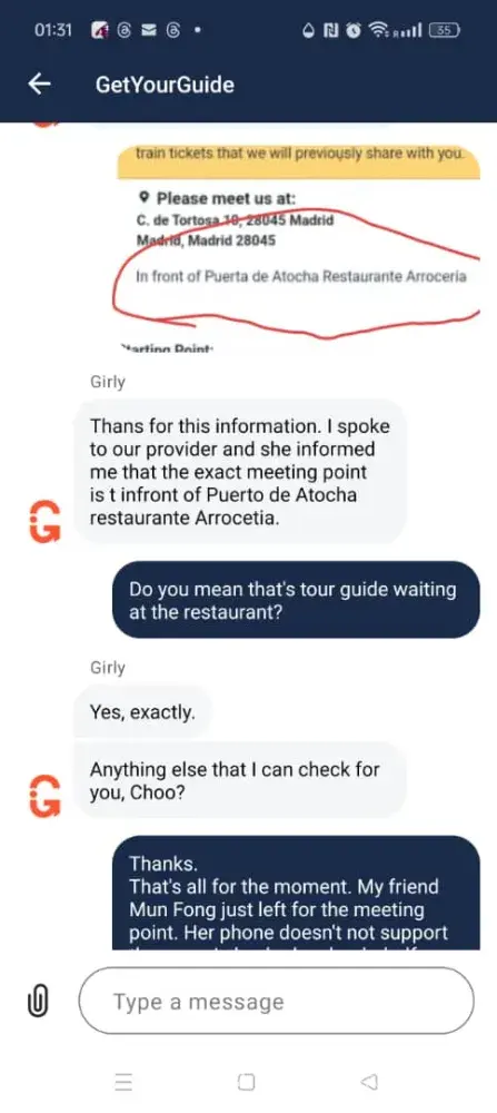 Then I explained that I expected getyourguide to take full responsibility for the products they advertise on their website, She contacted the operator and got back to me:
