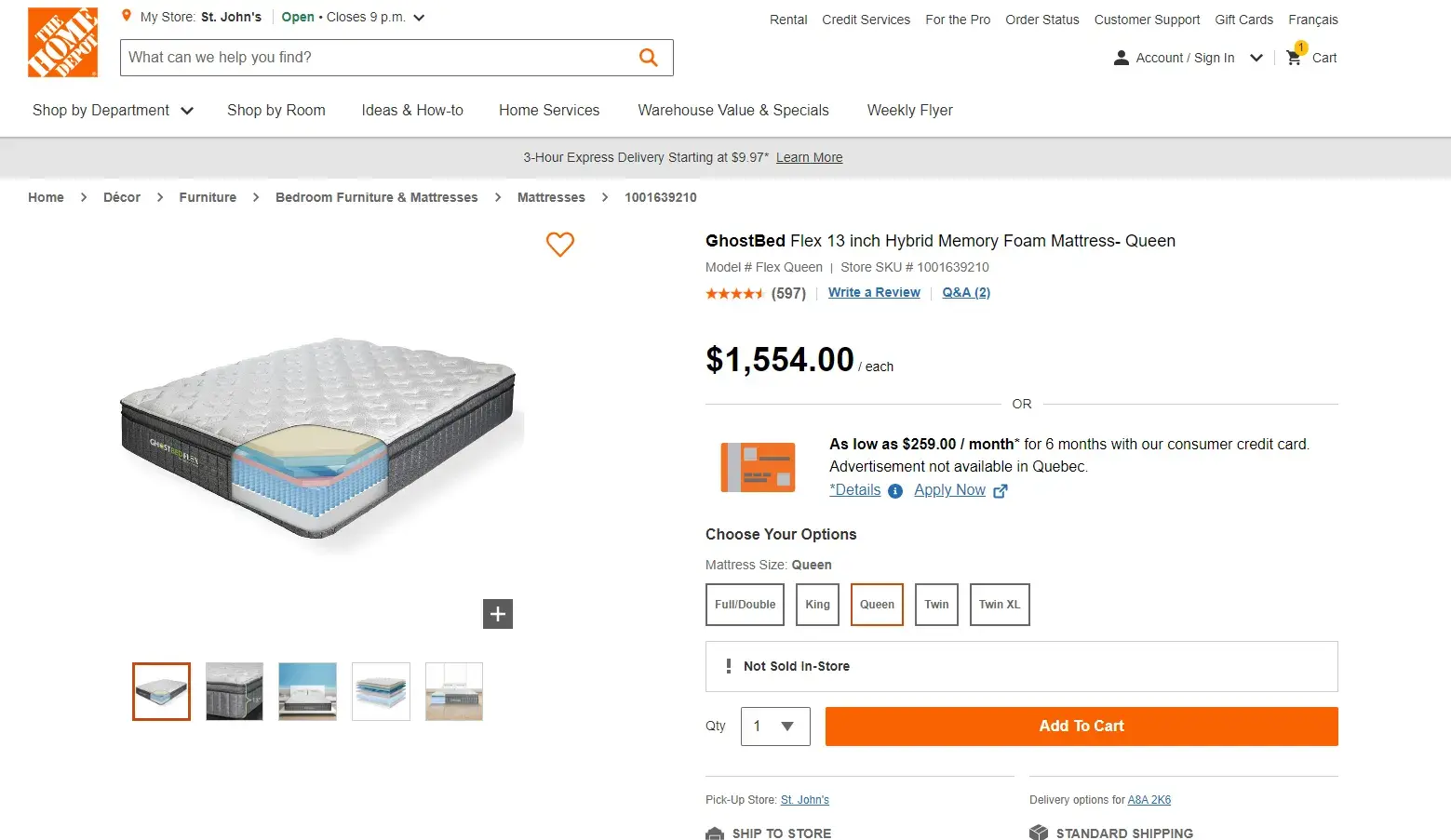 Ghostbed made good on matching the price that a retailer was selling their mattress for.