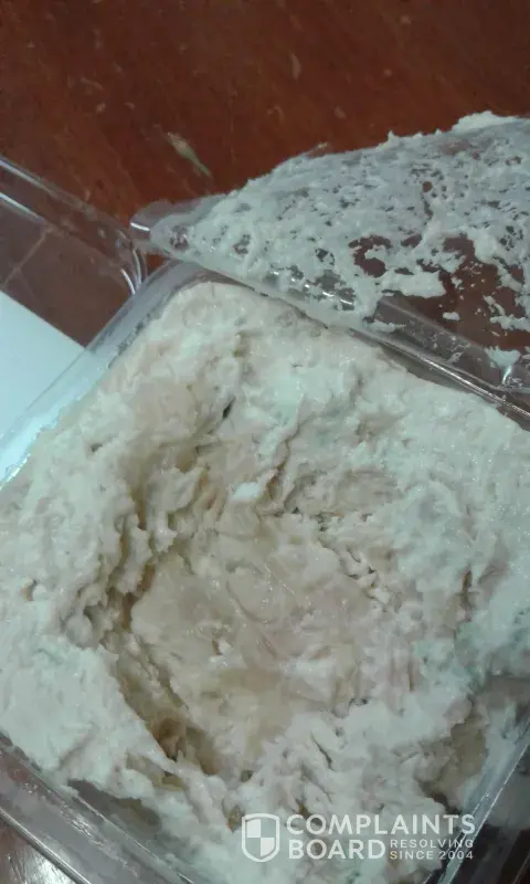 I purchased chicken salad Giant Eagle last night, 9-28-18. As I was making my sandwich today, 9-29-18 the entire center of the container was filled with pink, raw chicken. I am fortunate that I did not eat it yet. I have photos to forward to you. It is extremely disturbing.