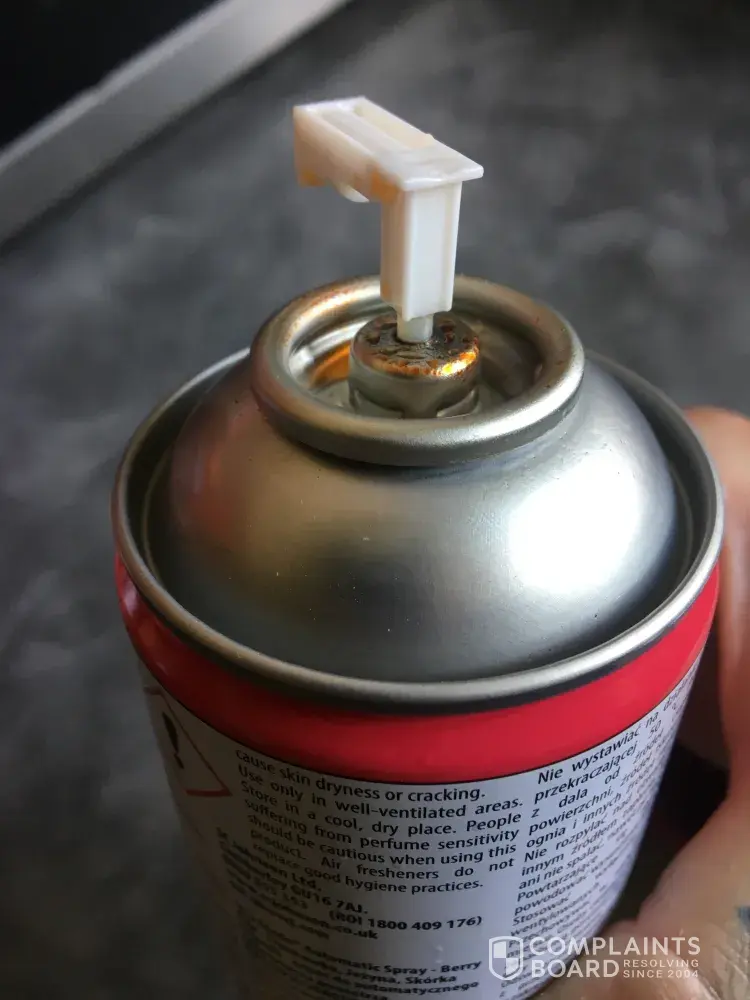 I bought a refill can of berry pops from an Asda store quite a way from me. Popped it into my glade case and it's not spraying out the spray cap, it's coming out from the bit you fit into the can and cap. Forming in the neck of the can and not doing anything. Gutted as this is my favourite scent and quite hard to come across now. I have attached pictures, unable to take video as it runs down side of can and into the glade casing out the bottom and onto the side. But you can see from the picture where it's pooling and it's clearly not spraying out top.