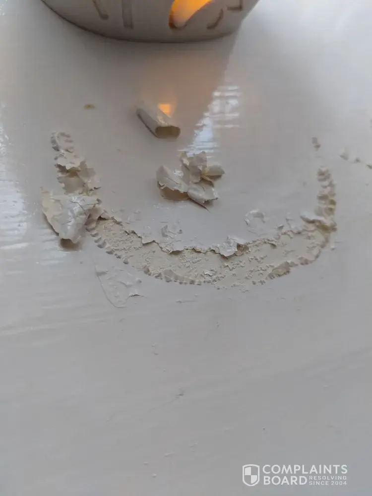 brought two glass glade candles after putting them on hour later could smell burning. as it burnt hole in my wooden table which has now got to be replaced pls contact me on [protected] this was a health hazzard as it started a firer.