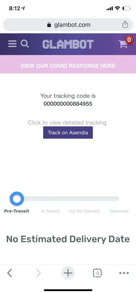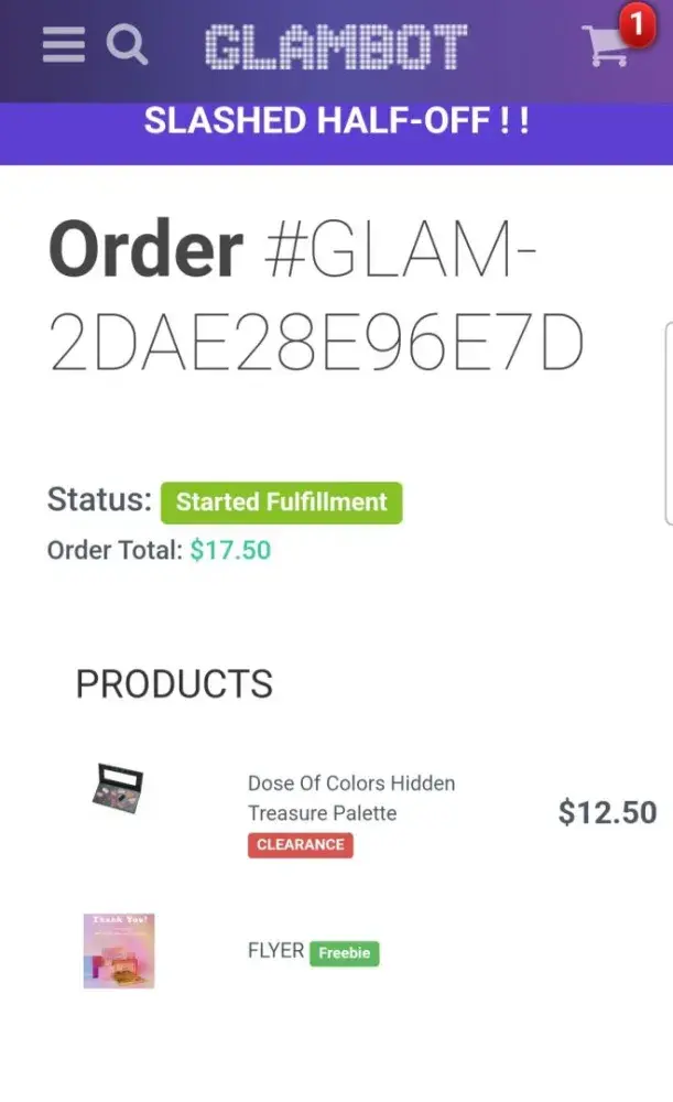 I also have previously contacted Glambot regarding order# GLAM-2A7A47694BF1