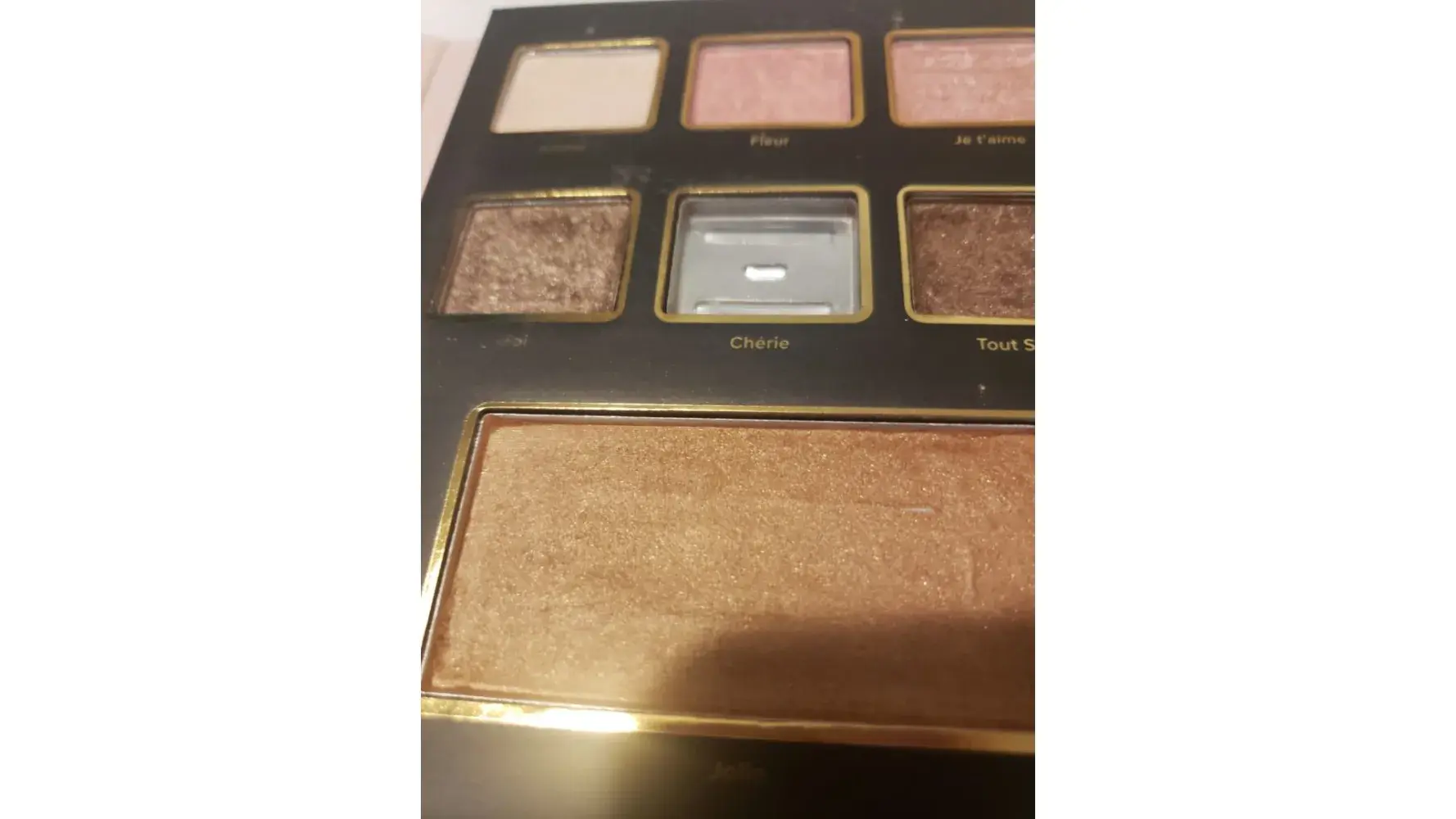 I have never received a product from Glambot in this condition. I realize there are flaws and swatched but an entire eyeshadow missing.
