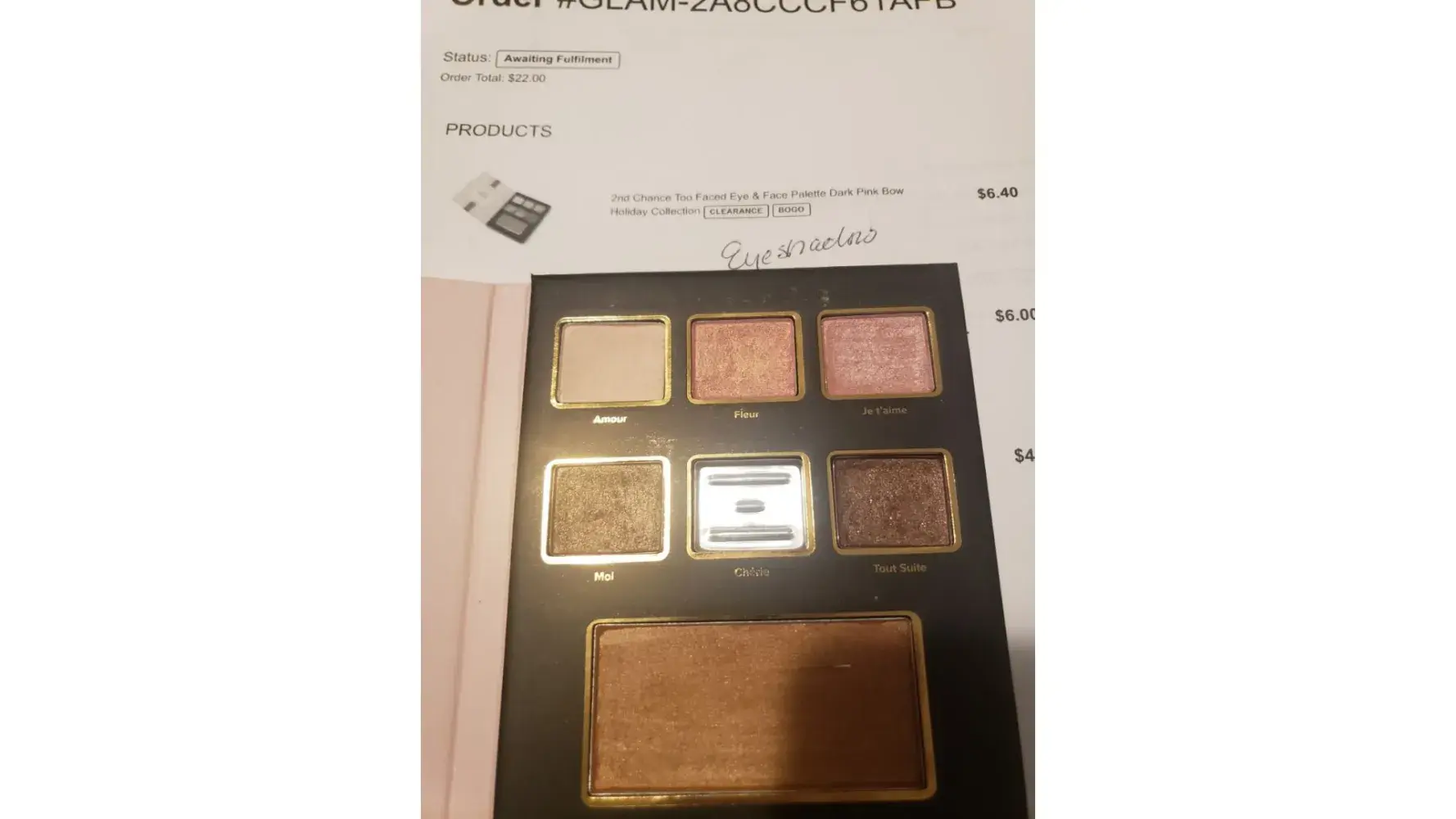 I received this in palette in order # GLAM-2A8CCF61AFB