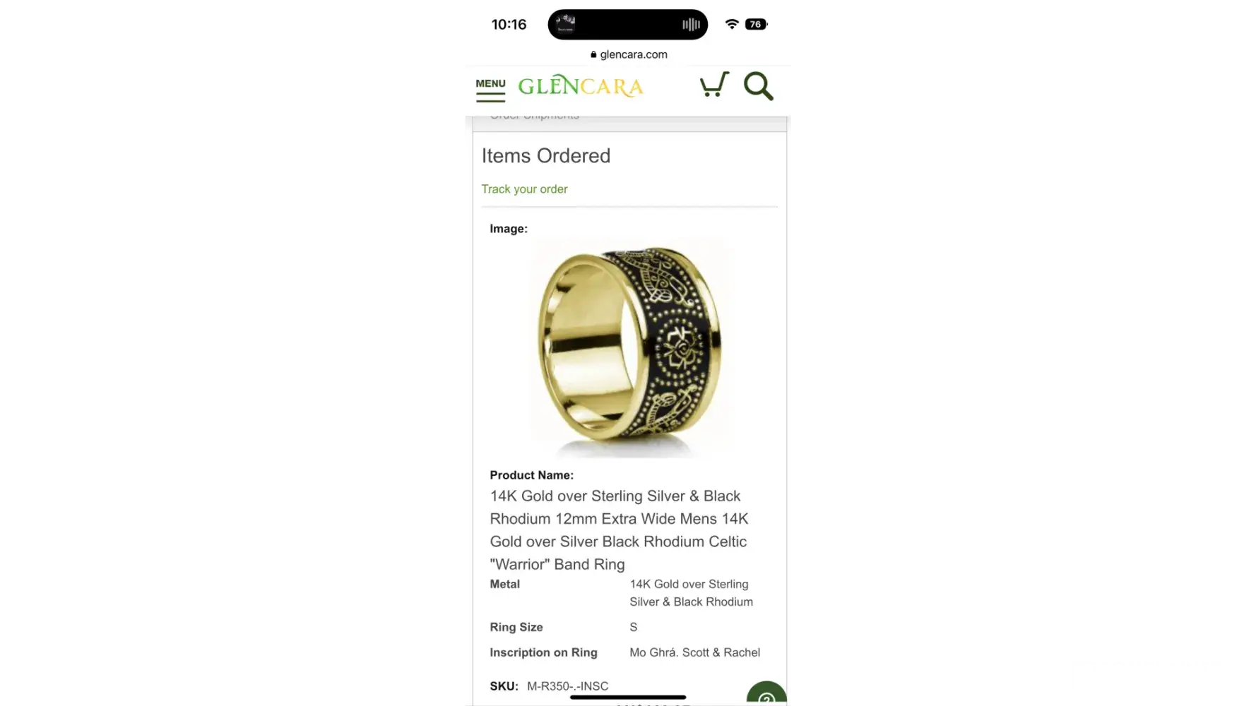 6/1/23 order arrived but ring was not engraved. Reply from Glencara was that engraving machine broke and they could offer refund on engraving cost plus 10% refund. I declined and asked for correct order to be sent. Glencara agreed once they received and processed return or incorrect order but advised to place another order if the item was needed sooner which I did.