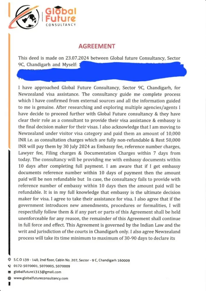 We lost 25k + 25k me and my friend visited that consultantancy in the month of August 2023 for newzealand job vacancy in the name of medical laboratory test they asked us money and they made test but it's been more than a month we didn't received any medical report and now from 1 month they are not picking the call and they are not responding to our messages after seeing.. they are the number one fraud agency... and there are many girls who is working as agent at that agency and they are the people who guides us and now they are also not picking the calls and no any response from past 1 month...we travelled from karnataka to their [censored]ing Chandigarh and travel expense was around 15k per person we lost everything kindly highlight this fraud consultantancy activities to a concern department pls... i will attach that idiot photo he told that his name is Ashish i don't know wheather it's a proper name or wat but I have his photo kindly find the attachment he is the head of Global future Fraud consultantancy Chandigarh.. so i requesting everyone don't fall in his trap we lost our money 😥