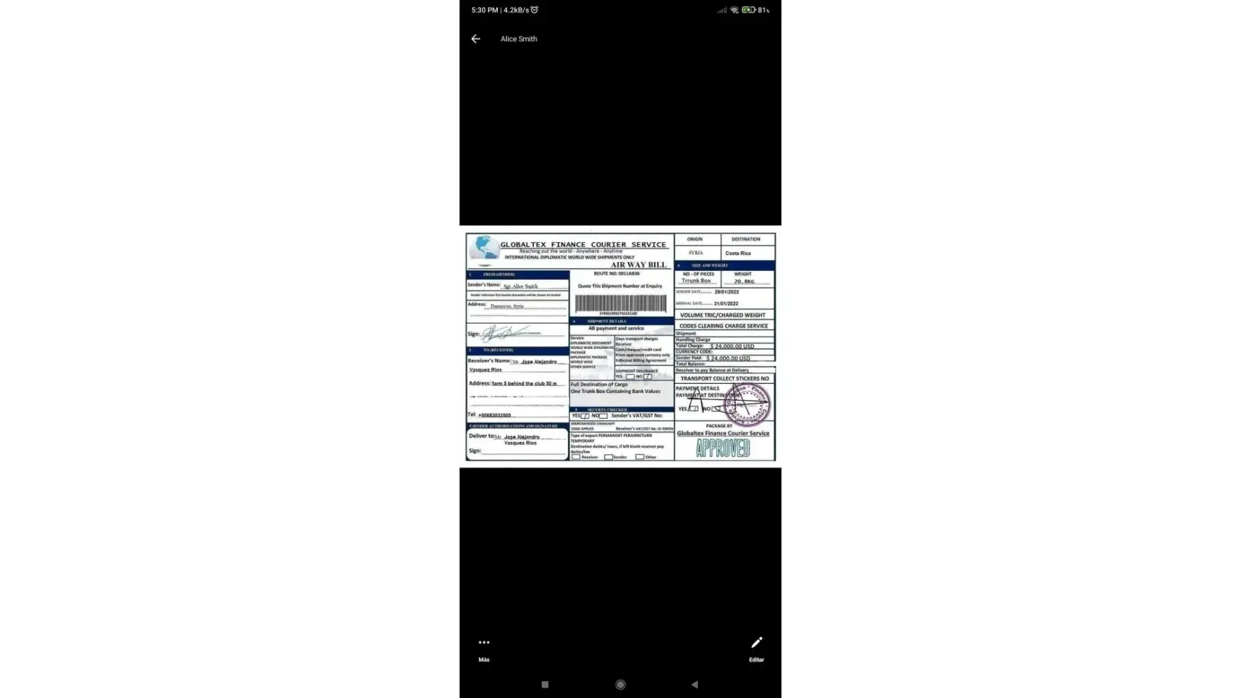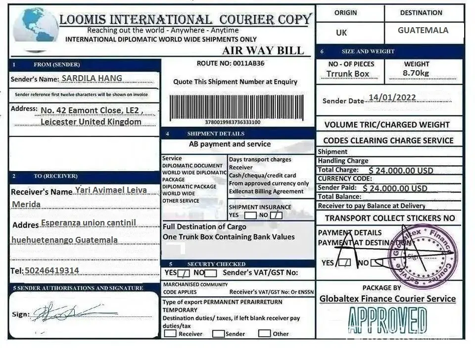 Me enviaron esto quiero saber si realmente lo tiene esta empresa viene a Guatemala pero me dicen que esta en mexico aun si es realmente un documento de loomis internacional