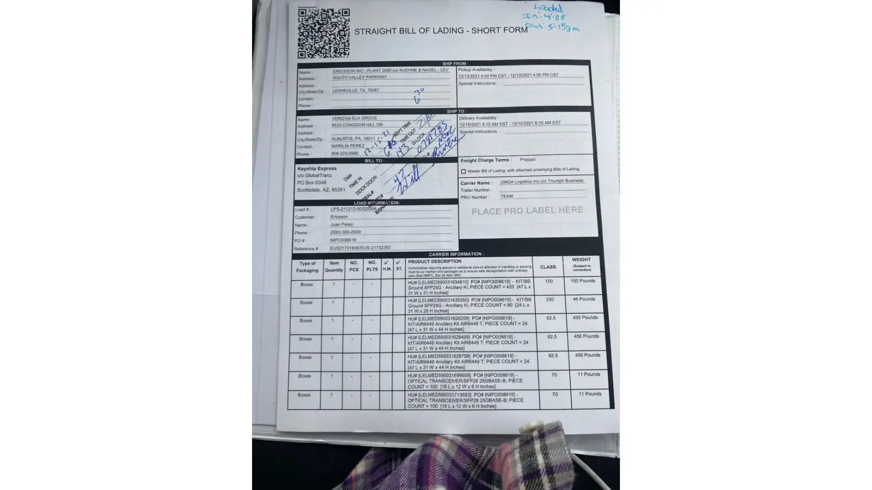 PICK-UP 12/13/2021 DELIVER 12/15/2021