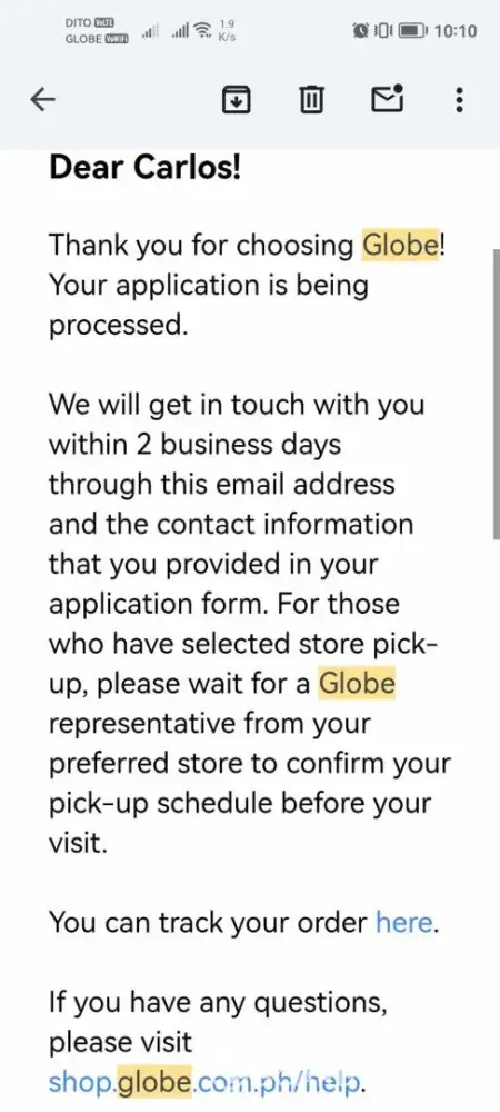 My current plan contract is about to end and obviously why I applied for plan renewal via Globe’s website. I paid for the device cashout already. The rider attempted to deliver the device twice but got kicked out by oir landlady because the rider has been insisting for a name (Minerva Guelos Pasol) that’s not even me and not in that compound either. I don’t know anyone with that name so Globe obviously made a mistake by putting a different person’s name on the shipping label but with my number on it. The first time I reached out to Globe on messenger, someone called me and promised that they’ll sort it out and have it redelivered. Nothing got delivered and it’s been more or less 2 weeks now and I saw at the courier’s website that my device has been returned to Globe and no one from Globe even called me to tell me what’s gonna happen now. I’ve been with Globe for years now even with their poor service from the start because I wanted to keep my number. It’s so hard to get help from Globe! I just want my phone, my plan to continue and to speak to a human being not robots. I’m hoping I can get help here please. Thank you.