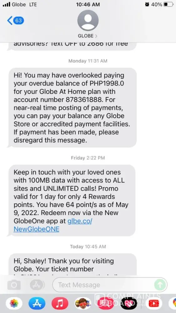 Read full complaintSubject: formal complaint against globe – non-delivery of famsurf999 promo