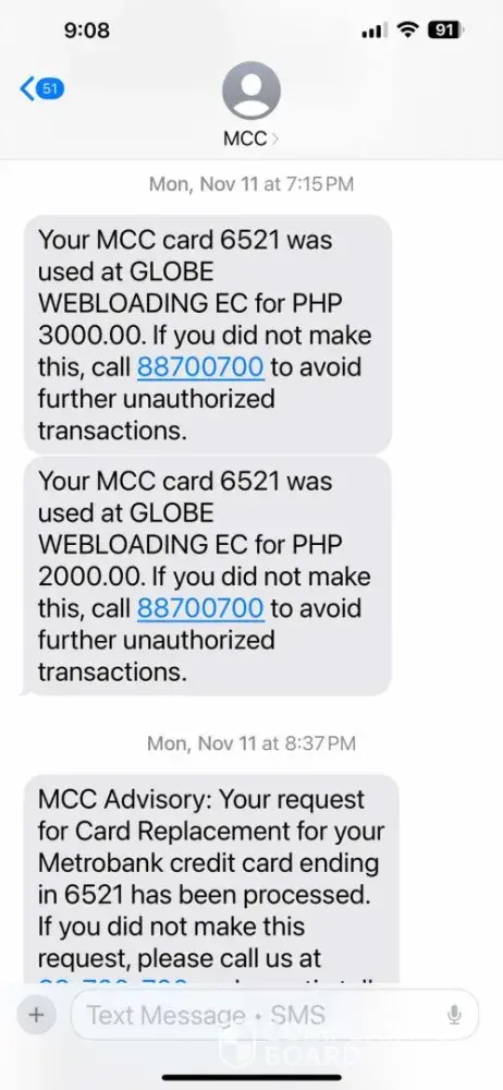 I received a message from Metrobank that my card was used for GLOBE WEBLOADING for the above-mentioned amount. I immediately called the hotline to have my card blocked to prevent further usages. I have reported the dispute with Metrobank last Nov 15, as advised by their CR (customer representative) to file a dispute within 3-5 days after the incident.
