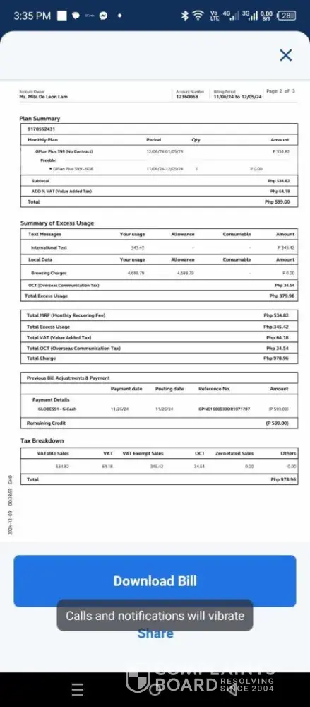 641 Globe Telecom Complaints