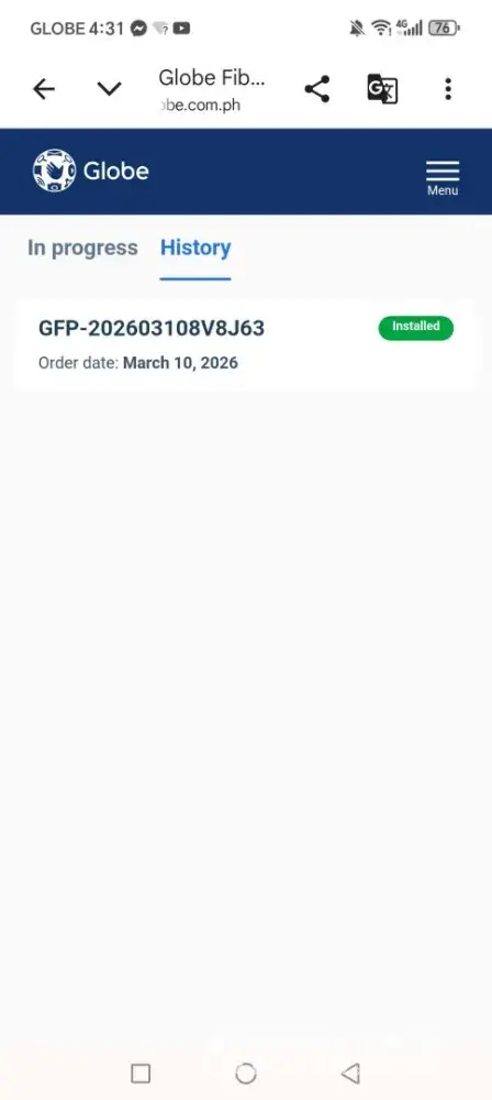 March 25,2026 around 12am-2am Since my internet connection indicates no internet access but the modem are all green and blinking, then March 27,2026 I tried to report it via Globe One app but the app keep on redirecting me thru messenger which the next day I did and I hot a message that a technician will come on march 31 8:00am-12:00pm to check it but when...