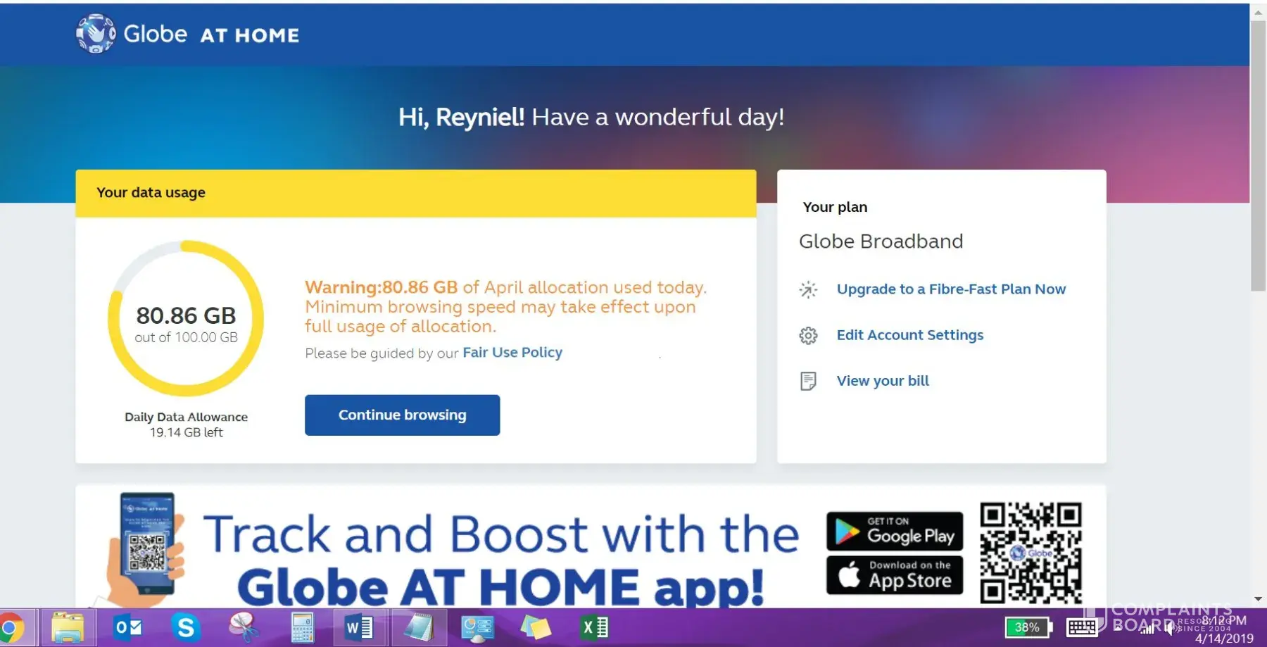 April 11, I called again to confirm this message. we have explored our options and the CSR and I agreed to have another Volume boost of 200GB for another 299 pesos and will be refunded as per the documentation of the call last April 11. Volume boost took effect and reflected on my Globe@home app BUT no update on the data usage for me to track.