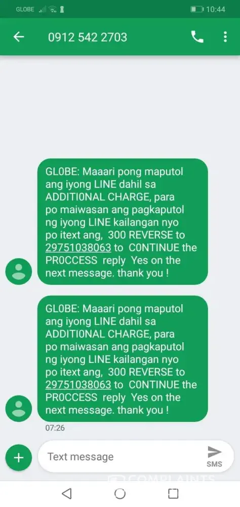 I have been a postpaid costumer of globe for the past 4 years. After I have recontracted my plan and added a new additional line last april 16, 2019. While my recontracted plan with new phone was successfully processed with up to date advices and messages, I was surprise to not receive the same kind of advices and messages for the services to be inputted in the new line and phone. Instead, I have been receiving a regular text messages from different numbers 09125422809, 09105216036, 0912 542 2705, 0912 535 7318, 0910 521 6049, +63 912 522 2367, +63 912 107 4403 and more.. With almost the same kind of advice that: I still need to register the plan because it might get deactivated because of additional charges and because this number and plan is not yet registered in "our computer". To me this is clearly an inside job by some of your globe employees who have access to sensitive information. I seek explanation and clarification for this continuing incident. It is not right, it violates my data privacy and it creates undue stress to your user. I have screen shots of all messages uploaded below. Please do something to correct this.