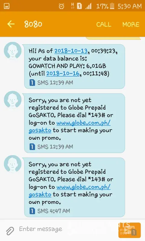 On Aug 26th I received a text message from Globe demanding a payment of P1972.12 or outgoing service would be discontinued.