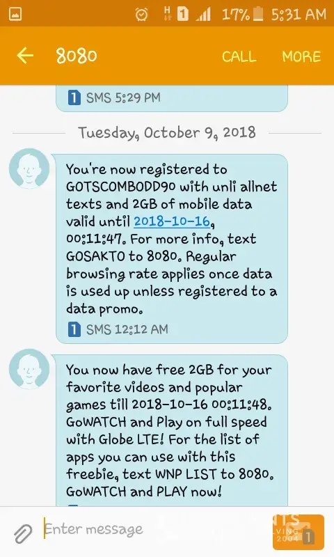 Your gowatch 2gb free is a scam.whenever i watch youtube the usage goes against the 1gb data i registered with.it only consumes a bit data from the 2gb free.i also loaded thru gcash a gotscombodd90 oct 9 midnight and whenever i check my remaining data it kept on saying im not registered but i can still use the data until now.only that i dont know how much data left bec of this.im thinking of switching to smart.i even called 211 regarding the data allocation and your cx service sucks.you're incompetent!