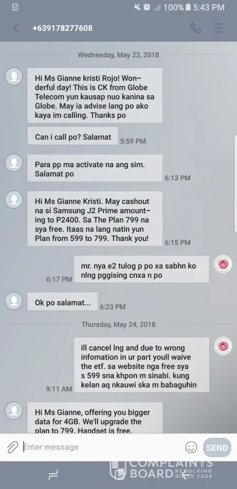 So I need to write a formal complain for this issue I encountered yesterday regarding your globe broadband service. My internet got disconnected yesterday may 14 2018 even the bill was settled. What I did was called your customer service and check what happened. It was disconnected due to unpaid balance for the cut off on april. It was clearly stated on my billing statement that my due date is every 2nd of the month. However last april 17 I called customer service because my line got disconnected due to netflix subscription that I did not subscribe (the charges was waived) and as per the person I talked to I don't have any balance and wait for my may 12 billing statement to check if the netflix charges has been waived and pay my bills. I was under the impression to pay my bills before the may 12 billing period so I paid my bills may 11 2018 amounting to php1300. May 14 218 my internet got disconnected for no reason and when I called your customer service they said that I was due to unpaid bill. At 8:08pm (may 14) I talked to adrian donna (zetl5210) and advice me that he needs the last four digits of the receipt number at that time I don't have it handy so I decided to call back. Around 8:40pm I called again and talked to julie ann mirones (ztcmo6074) provide her the receipt details. I requested to her that I need the internet as soon as possible as I was working at home due to bank holidays. Julie ann advises me that my internet will be reconnected after 2 hours. After more than 2 hours of waiting and resetting my modems still not connected so I called again for the 3rd time!? I immediately look for a supervisor and was transferred to supervisor ian aguilar (ztcm0424) and tell again the issue for the 3rd time. Surprisingly they don't have the record of my second call request and it was only a billing inquiry. I was so upset and frustrated and disgusted about the service as I was waiting for more than 2 hours resetting my modem like an idiot and doing it for nothing. So I requested ian to escalate the issue to have my internet back as I need it for my work and I was advice that I cannot have the service until 10am the following day. The supervisor was very unhelpful that I need to ask questions all the time to resolve the issue. He don't listen he only hear what I was saying and setting expectation not providing solution.