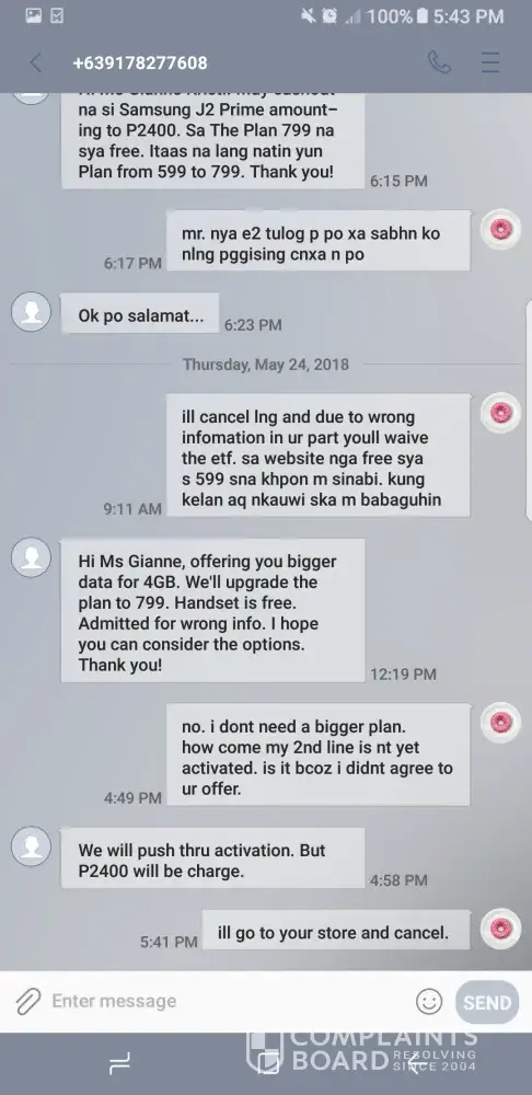 If I am not given either of the 2 plans as compensation, I will continue with my NTC complaint and this will cost you income, revenue, jobs and your image.