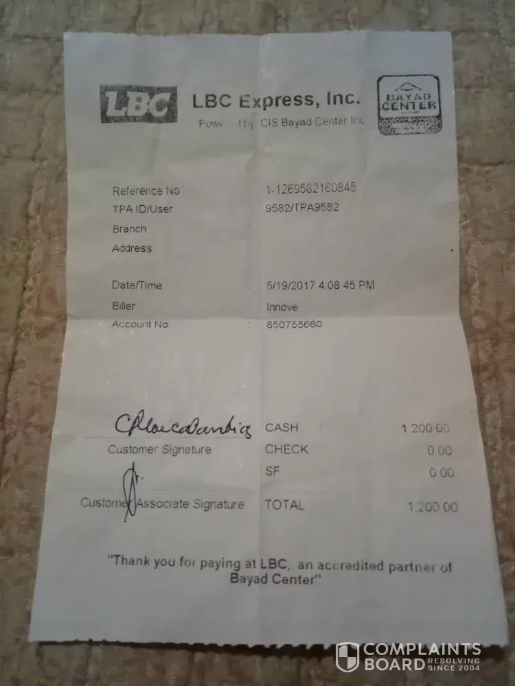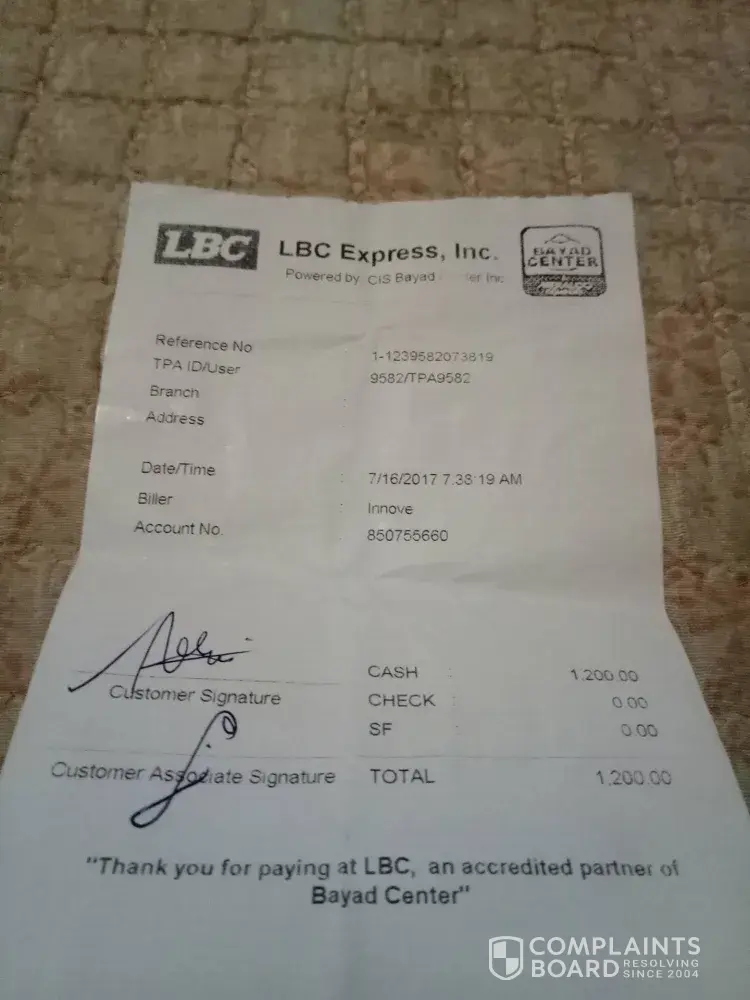Innove, taguig reference number h1000676850c, $26.56 and $1.43 charged
