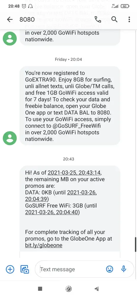 I just loaded Go90 for data cause my data will be used up soon and it accepted and i payed for that Go90 and ive been loaded too, but not even an hour later my data got used and theres me expecting i have data since ive reloaded it but it just says 0kb, ive tried many times but its still 0kb so i reloaded again Go50 this time and it got accepted again and payed too, this time it qork and i got the 5gb but still i wasted that 90 since it says i payed for it but i got no data on that one