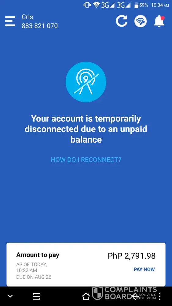 GLOBE disconnected my internet service even if my due date is August 26, 2020. When I reached out to Customer Service, you insist that I pay for it. I was not able to WFH for 2 days already because of this. This is aside from previous issues I have with your company.