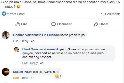 July 15, 2020 = I called 211 again and this time galit na ako kasi panay scheduled visits pero wala nangyayari, nag set na naman ng job order this time mga engineer na daw pupunta, at d end dumaan araw same results nganga pa din... No action from globe, wala sila pagpapahalaga sa mga subscribers nila more than 10 years na kame sa kanila never kame lumipat... Un fb page nila panay automated reply madami na galit sa serbisyo nila...