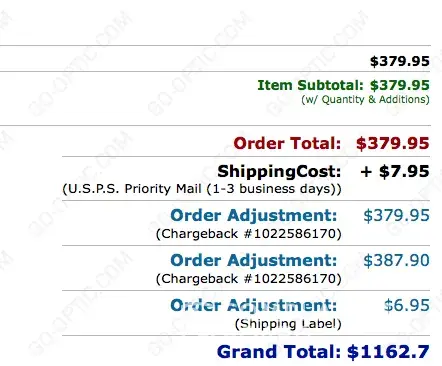 I authorized and ordered ONE PAIR of frames with prescription lenses. Go-optic then charged my Master Card not once but 4 additional & separate unauthorized times totaling over $600. They also charged another Visa account twice for $136.90 WITHOUT AUTHORIZATION. I had to close both of my accounts. This place is a full blown scam.
