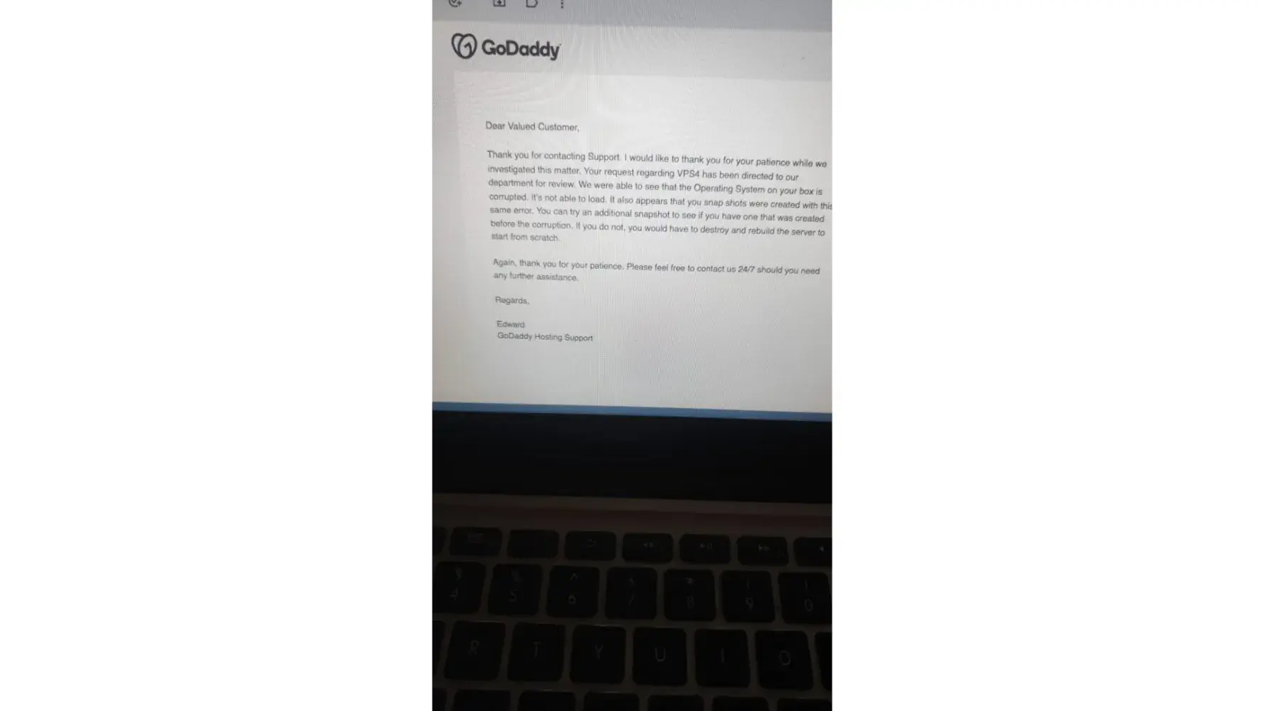 It was showing on my panel all the backups it took regularly. On 7 Dec 2022 it suddenly stopped and I was not able to access it. Then I chat and make a call to GoDaddy support and they ask me to use the recovery console window to access my server. When I opened it, it showed me the Troubleshoot window. By doing that I was able to open the command prompt and tried to access my data but it was all blank. Then we tried to restore our server from the backup of GoDaddy but it was not working at all. We requested a lot to get our data from GoDaddy but they are saying the data is lost and you can create a new server now.