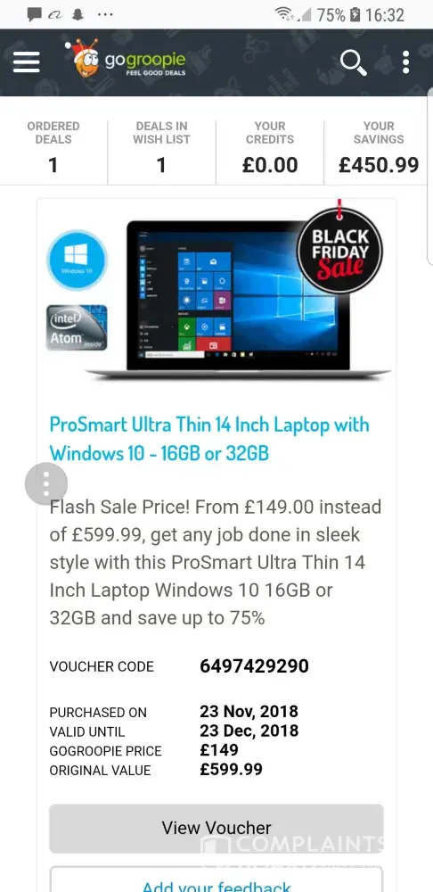 GoGroopie I am complaining about I purchased a laptop and cancelled the order after I read the reviews on seller