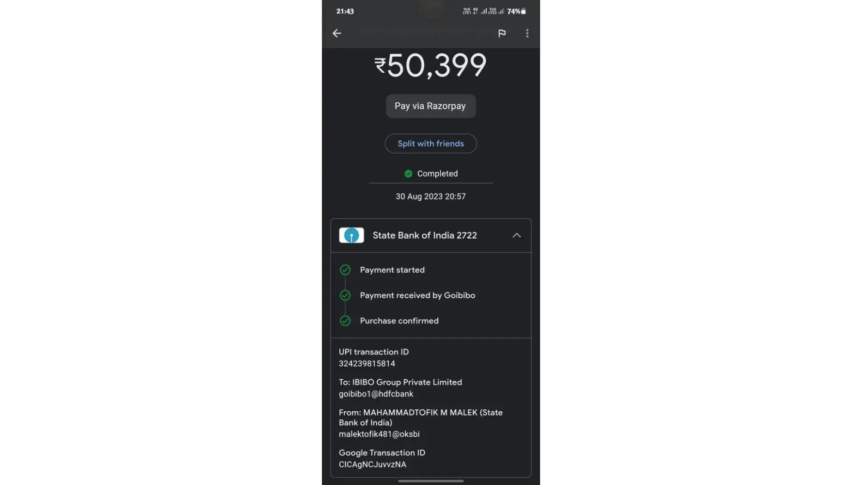 My UPI TRAnsaction ID :- [protected].