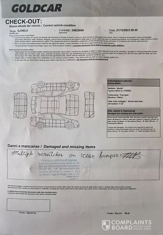 My name is Luiz Henrique and I would like to register a serious complaint regarding my car rental made 20/12/2023 at Bergamo airport, contract number [protected] GoldCar / Europcar. See below what happened: