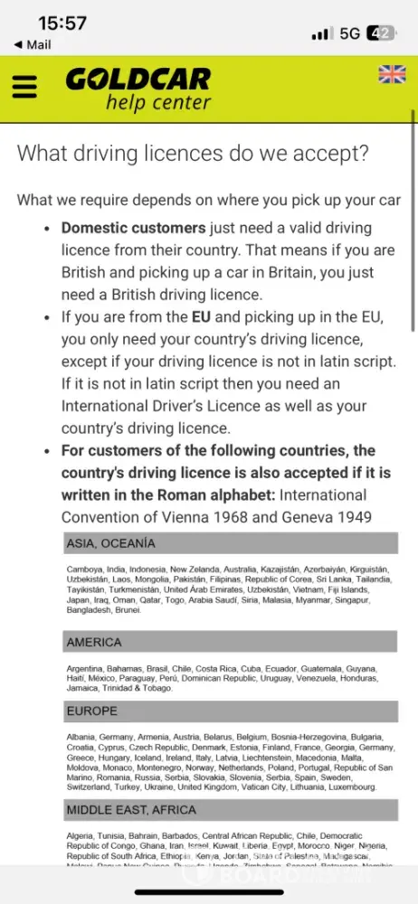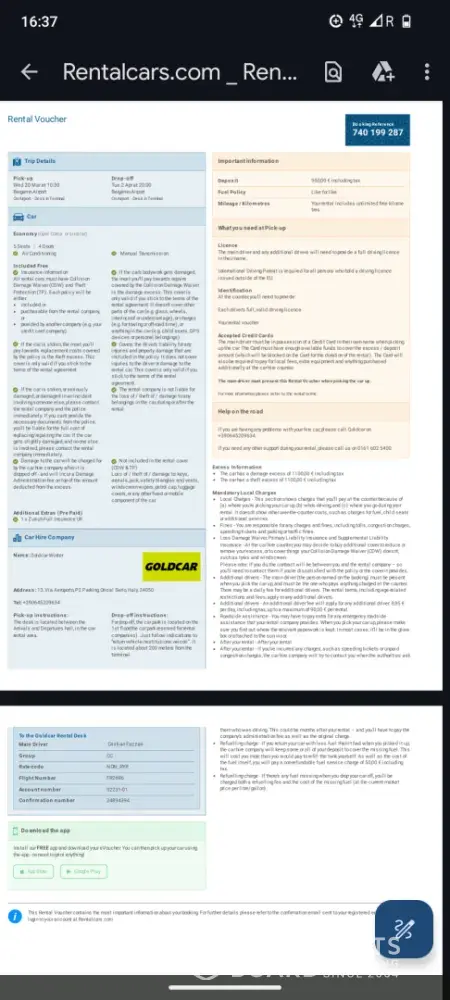 I have the confirmation from (Goldcar/Economybookings).