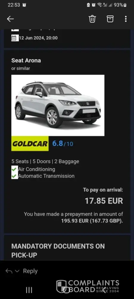 I had a car hire booking with Goldcar through Economybookings.