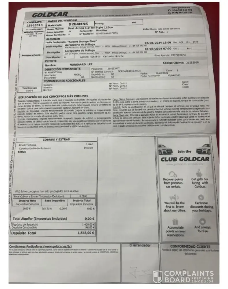 Goldcar have been less than helpful with their responses. I also tried calling and they denied to speak over the phone, stating that customer service is not available other than email.