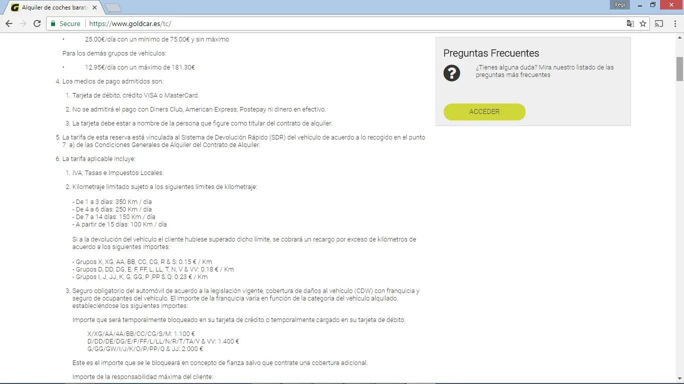 Goldcar has turned out to be the worst and biggest cheat car rental company i have come across in 22 years of renting cars around the world. One charge after another keep getting added on at every step of teh way... one nasty surprise after another.