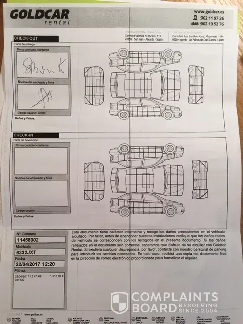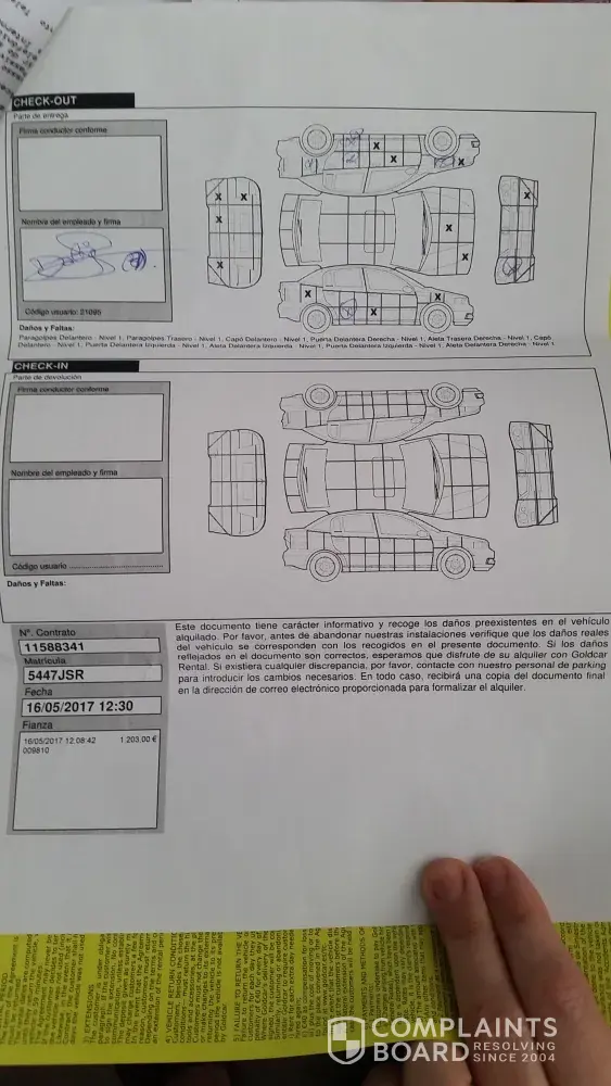 Third, i was already upset for having this old and damaged car, but I acted in good faith, assuming that all this scratches and damages were reported on the contract. If you see the picture of the contract, you will see a lot of risks reflecting the scratches that this car has. I was also Goldcar customer for a while and already rented more cars with them. I assumed everything would run normally.