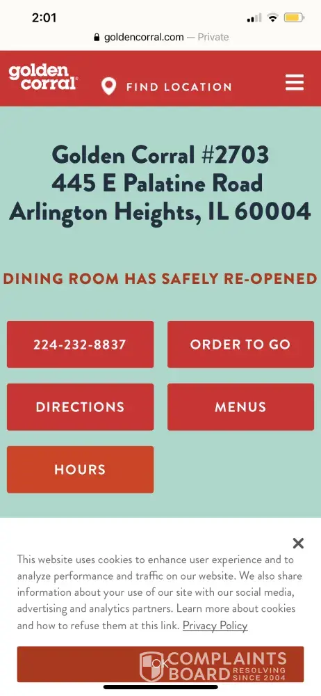 Full inspection of service and staff at site golden corral #2703 445 e palatine road arlington heights, il 60004